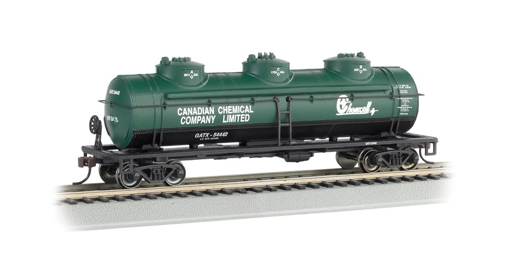 Bachmann Silver Series HO 17142 Transcontinental Oil Company 40′ triple dome tank car already assembled is based on the ones built in 1926.