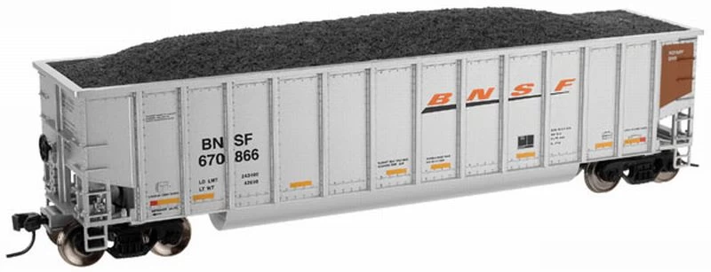 The Trainman aluminum coal gondola model represents a typical Association of American Railroads car type code J311, a gondola car with a load limit greater than 185,000 lbs, depressed bottom, and 36′ to 48′ interior length. Typical of these cars is the rotary coupler usually signified by a contrasting colour on one or, both ends. The Trainman model has thirteen side stakes and a double tub bottom. Gross Rail Loading is rated at 286,000 lbs.
