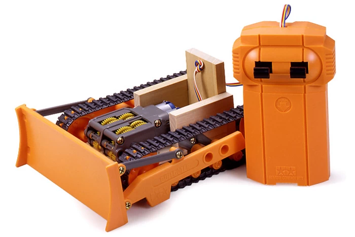 The Remote Controlled Bulldozer kit utilizes a pre-wired 2-channel remote system to enable forward/reverse and left/right movement. Powered by two FA-130 motors, this machine is sure to move mountains while teaching how a tracked vehicle works. The bushings, bulldozer blade and arms are all made of a high quality plastic material.