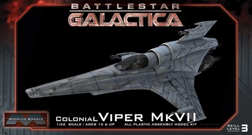1/32nd scale kit of the MKVII Viper from Battlestar Galactica. Like our MKII, the MKVII includes option for landing gear or in flight poses. Clear parts, detailed cockpit.