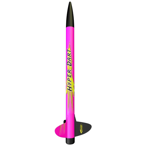 If fast to the flying field is your goal, then the Hyper Dart is just for you! Simply slip the fins into the fin can, tie the shock cord to the nose cone and that fast, you are ready! Powered by standard engines, the Hyper Dart can reach heights over 1,100 feet!
