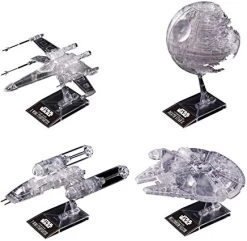A transparent VM set of the vehicles seen in “Return of the Jedi” including Y-Wing, Death Star II, Millennium Falcon, X-Wing. Runner x 8, Display Base x4, water slides