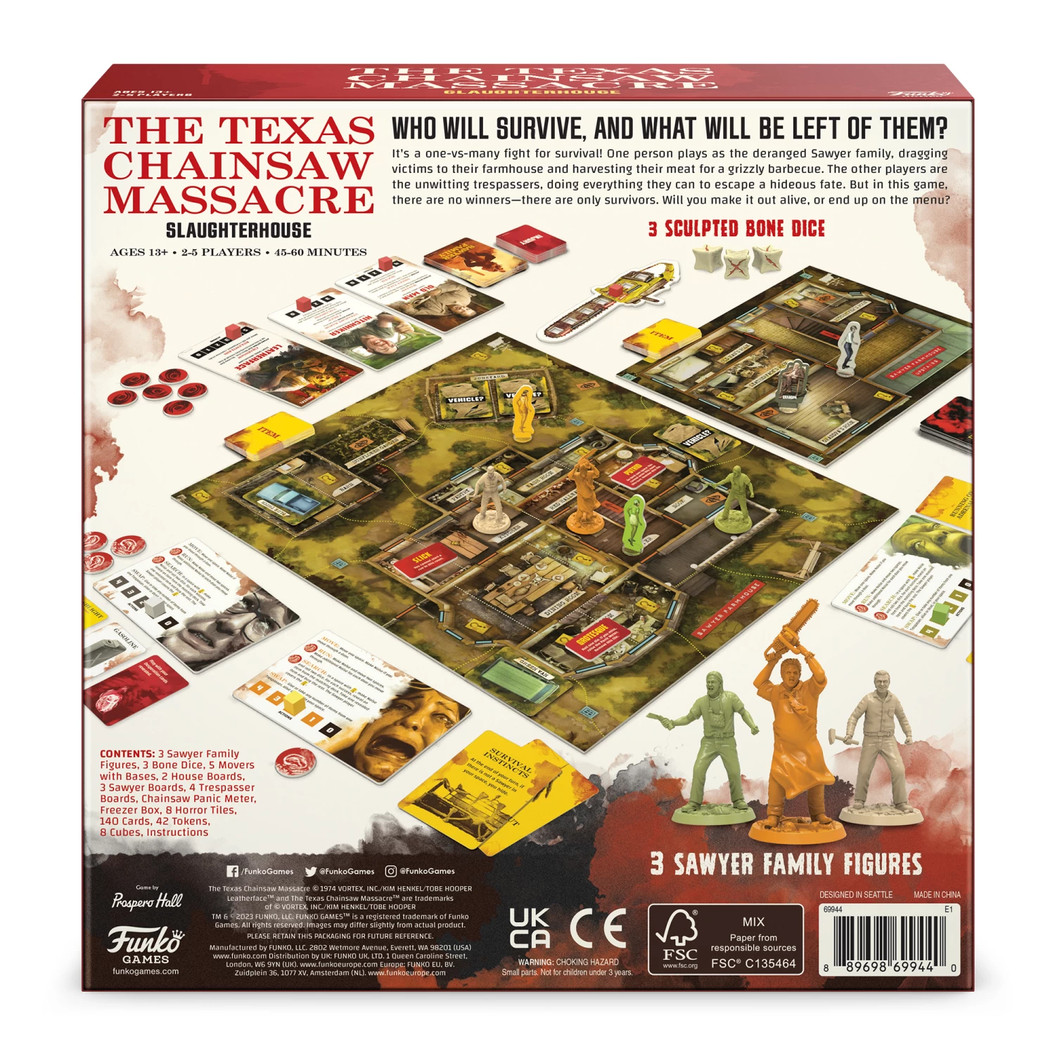 One person plays as the deranged Sawyer family, dragging victims to their farmhouse and harvesting their meat for a grizzly barbecue. The other players are the unwitting trespassers, doing everything they can to escape a hideous fate. But in this game, there are no winners—there are only survivors. Will you make it out alive, or end up on the menu?